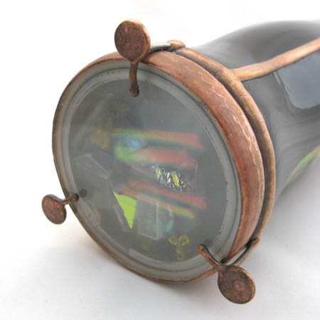 The object cell features a dichroic fused treatment and contains all handworked pieces of glass, creating incredibly random and intricate images.