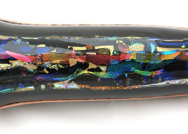 The exterior body of Magnum D uses black glass as a base for multi-layered fused dichroic glass, all encased in clear glass. This multi- layering produces depth and a very dramatic 3D effect.