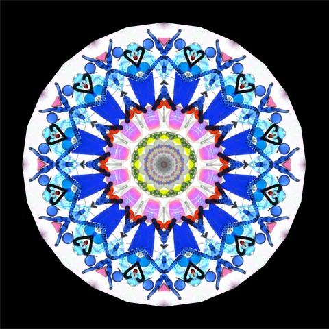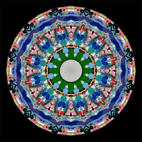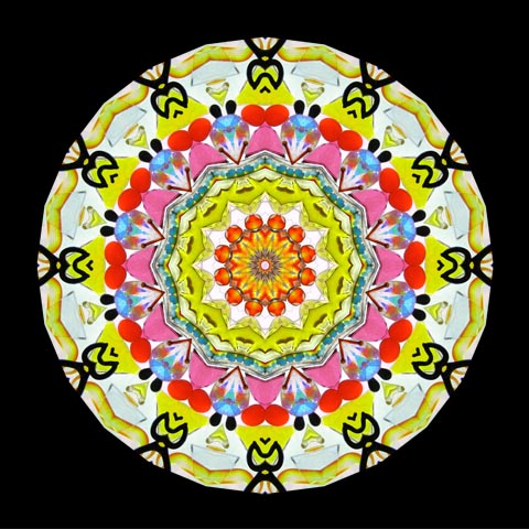 The free-turning dry object cell is filled with all glass that has been handworked, lampworked, and carefully selected to produce the most random and intricate images.