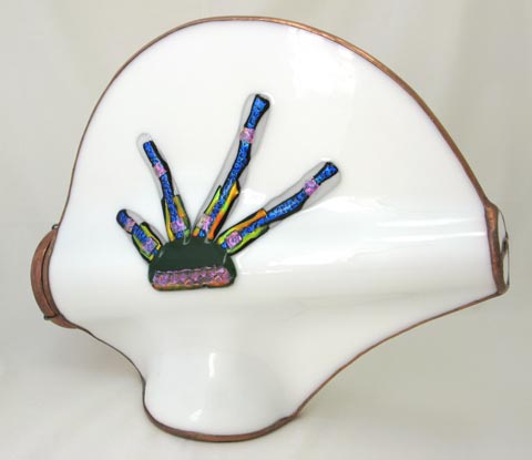 Radiance is 11” tall and 13” long, free-standing on the slumped base.