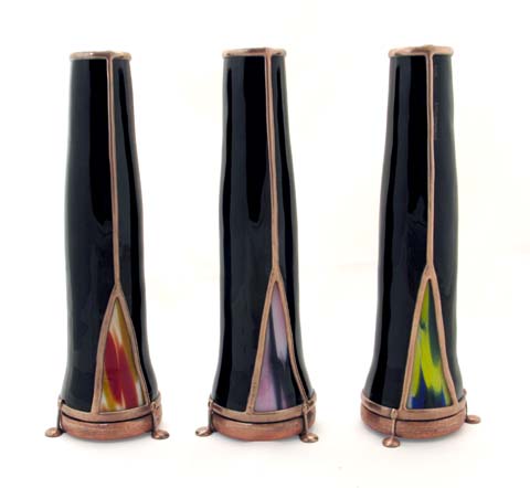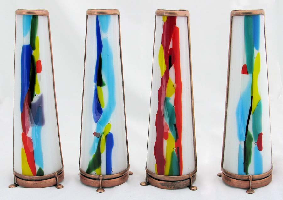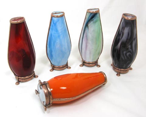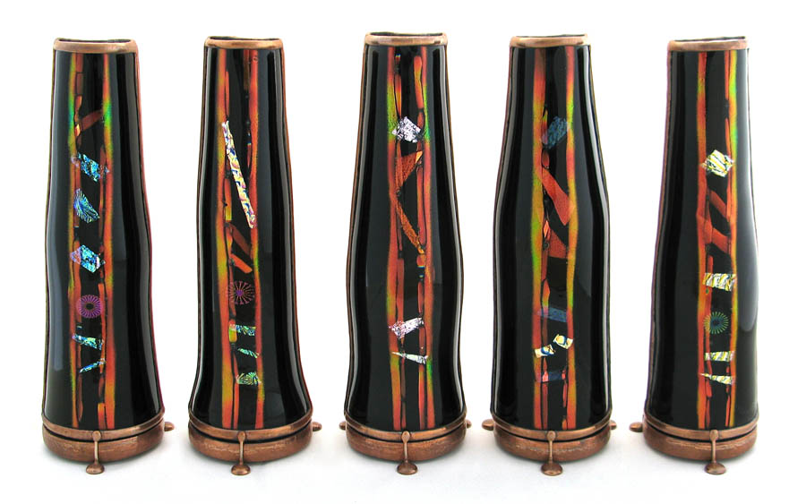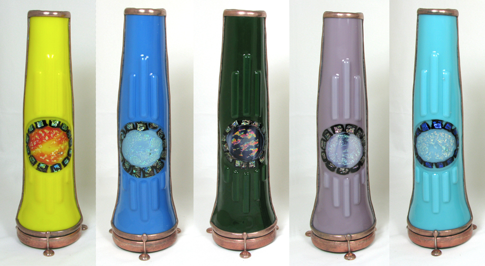 the hand made fused, lampworked, and cut glass.