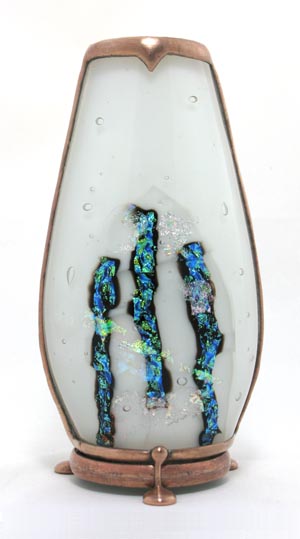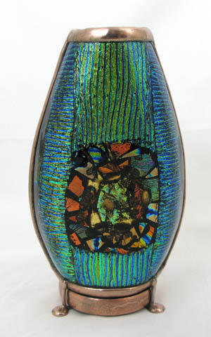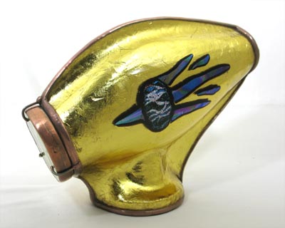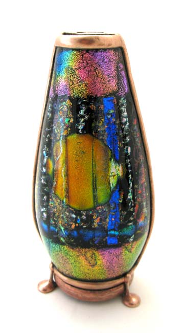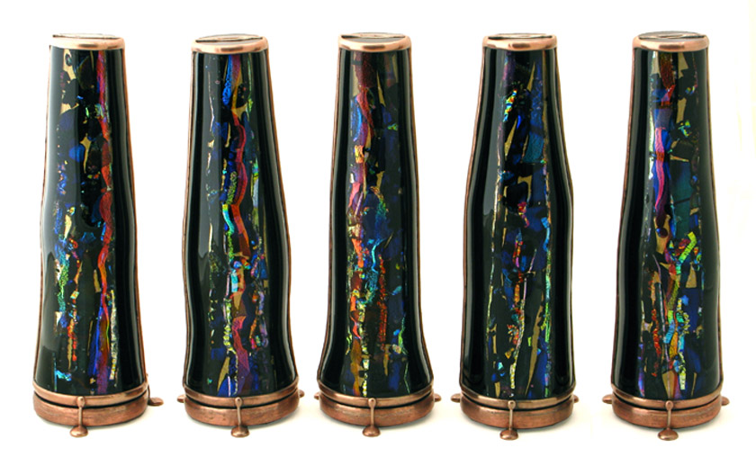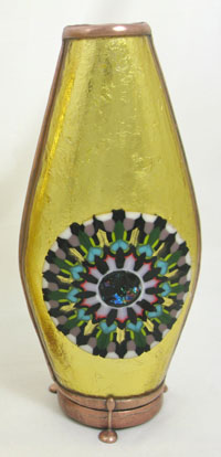 The exterior of the scope is multi-layered fused and slumped glass (gold metallic glass) standing 6” tall