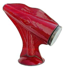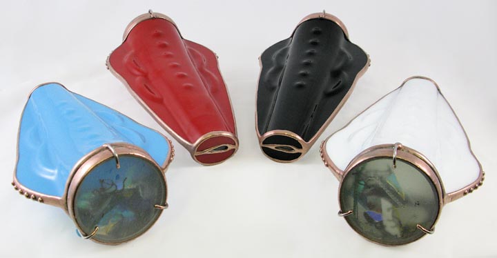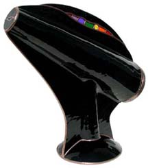 A stylish, fully slumped glass body, stands 14” tall and 12” long, and features an exquisite 10-point, 2-mirror image, with a lens built in the eyehole for improved viewing. Available in black, white, or red. |