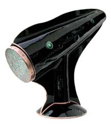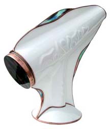 This parlor scope is very impressive both inside and out. The three-dimensional, slumped glass body features an embossed effect with a 6-point mandala running through the body of the cone-shaped scope. The images produced by the tapered two-mirror system produces breathtaking 15-point images. This scope is 14 inches tall and available in black or white. |