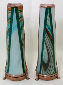The object case is treated with gold enamel fused to the cell producing a golden background for the lampworked objects.
